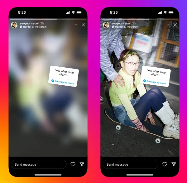 Une fois que vous avez sélectionné l’autocollant Révéler, vous serez invité à saisir un indice pour vos amis sur ce qu’ils pourraient trouver derrière votre histoire floue. Vous pouvez appuyer sur l’icône « Aperçu » dans le coin inférieur gauche pour voir comment votre histoire apparaîtra à vos amis.
