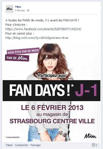 Notez qu’inciter au check-in est plus pertinent que d’inciter au « j’aime » : vous risquez de vous retrouver avec de nombreux fans qui ne sont finalement pas tellement intéressés par ce que vous proposez, comme avec l’ancienne fangate.