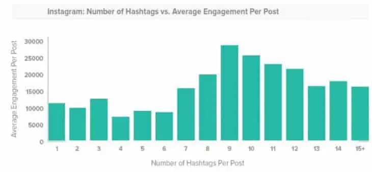 Après avoir analysé plus de 65 000 posts, TrackMaven, agence spécialisée dans l’analyse social media, souligne que ce sont les publications avec 9-12 hashtags qui sont les plus performantes. Sur Instagram, ces posts suscitent un engagement beaucoup plus important.