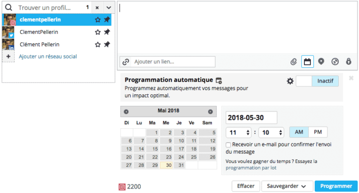 Depuis peu, Instagram permet à tous les Community Managers de pouvoir programmer la diffusion de leurs publications avec des outils comme Hootsuite. Cela constitue un réel gain de temps dans l’animation d’un compte, sachant que la valeur ajoutée ne réside pas dans l’acte de publication.