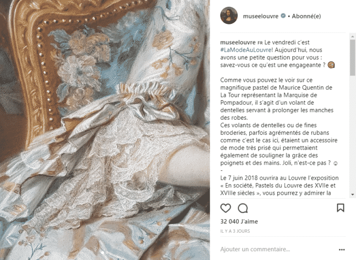 Le compte Instagram du Musée du Louvre ne fait pas que diffuser des photos des œuvres : il propose des informations intéressantes et des anecdotes sur l’Histoire. Il donne l’occasion à ses abonnés de se cultiver.