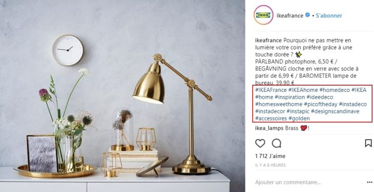 Par exemple, le compte IKEA France ajoute toujours des hashtags à ses visuels, en rapport avec la décoration et l’univers de la maison :