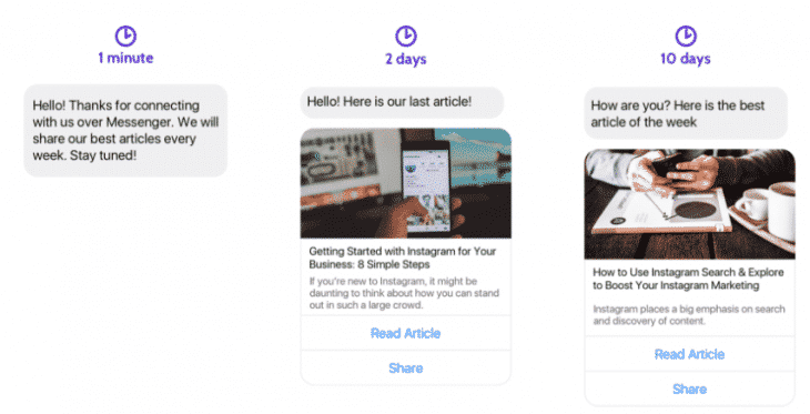 De plus, vous pouvez agrémenter votre message d’une carte Messenger composée d’une image, d’un titre et même d’un call to action !