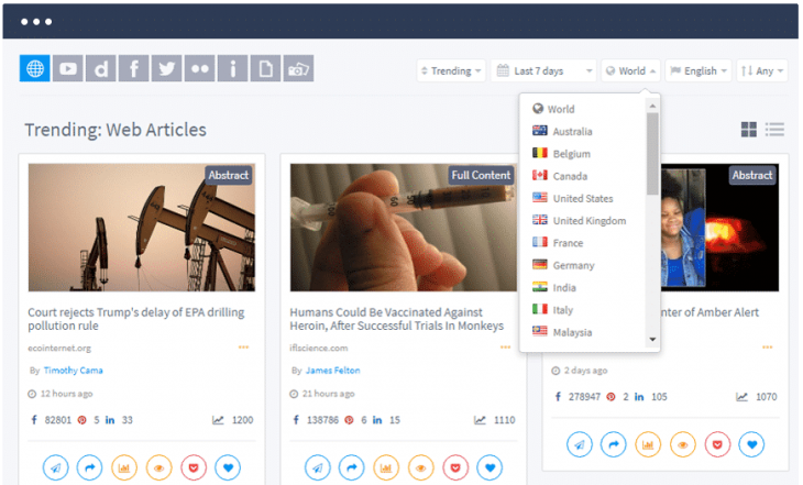Très utile pour votre curation de contenu, ContentStudio vous permet de rechercher et trouver rapidement du contenu à partager sur vos pages. Faites vos recherches sur un sujet particulier, en précisant des sources ou en choisissant des filtres, selon vos besoins.