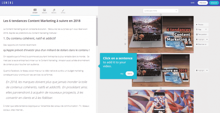 1) Lumen5 – Transformez vos articles en vidéo