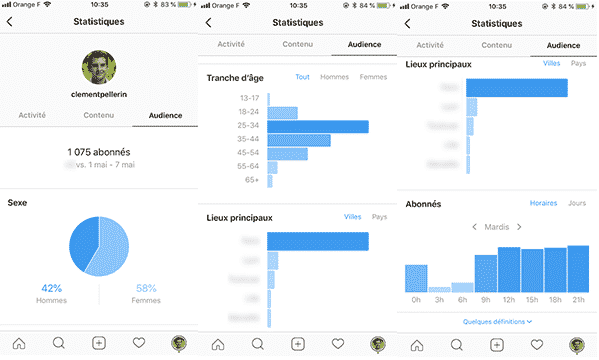 Le troisième onglet nommé « Audiences » vous permettra d’en savoir plus sur les données démographiques de vos abonnés à savoir :