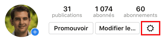 Vous devriez ensuite avoir en haut de cette page une petite roue située sur la droite de votre photo de profil :