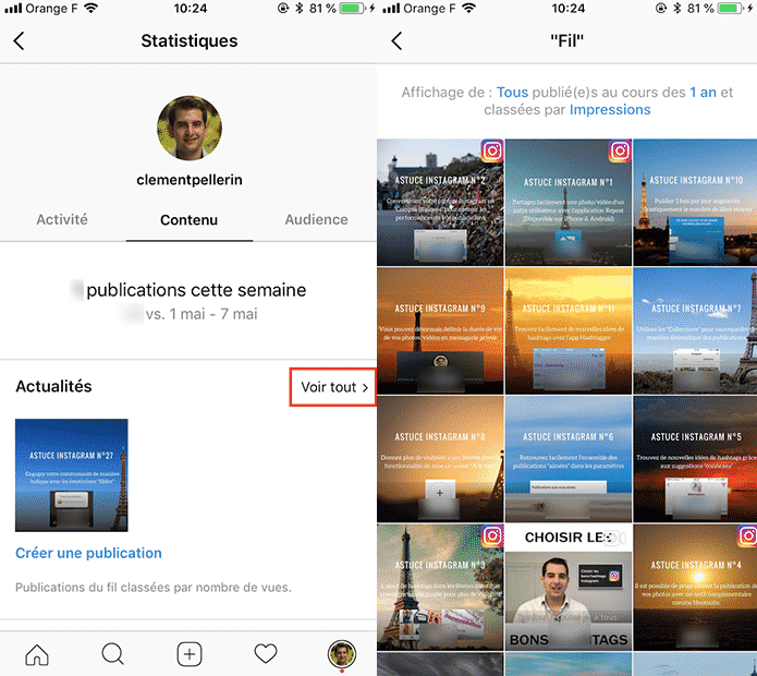 En cliquant sur « Voir tout » au niveau de la rubrique « Actualités », vous pourrez accéder à l’ensemble des performances de vos publications :