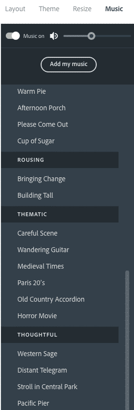 - ajouter de la musique provenant de la bibliothèque de l’outil ou vos propres sons