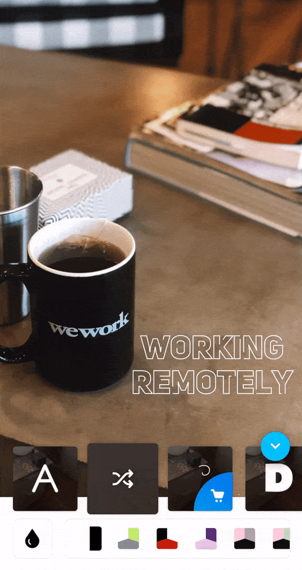 Pour utiliser une photo/vidéo provenant de votre pellicule de smartphone, faites glisser l’écran vers le haut. Ensuite, sélectionnez une combinaison de couleurs & polices que vous aimez.