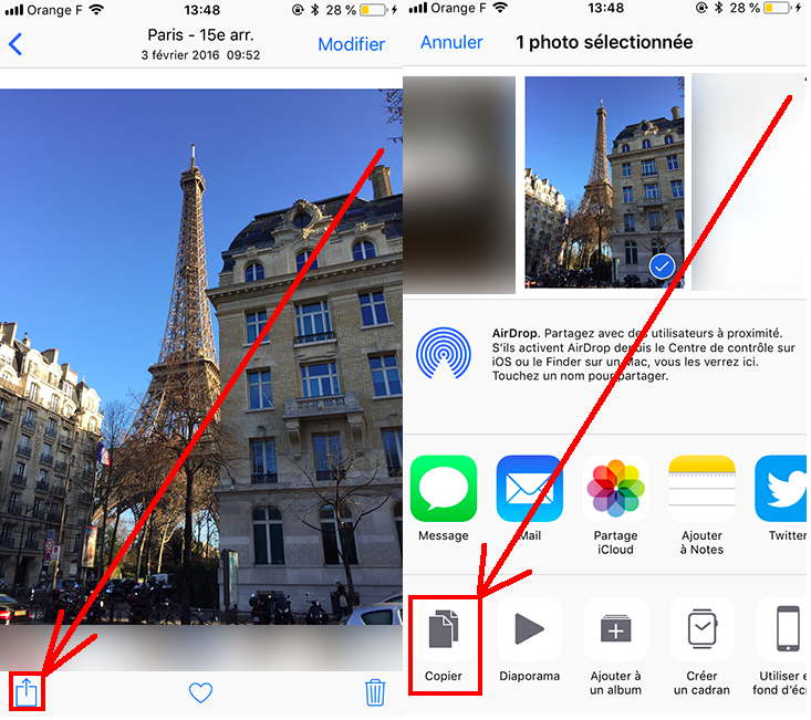 Est-ce que vous avez déjà voulu ajouter des images supplémentaires sur une diapositive de story Instagram ? Voici comment procéder : rendez vous dans votre pellicule de téléphone, choisissez le visuel, cliquez sur « Exporter » puis « Copier ».