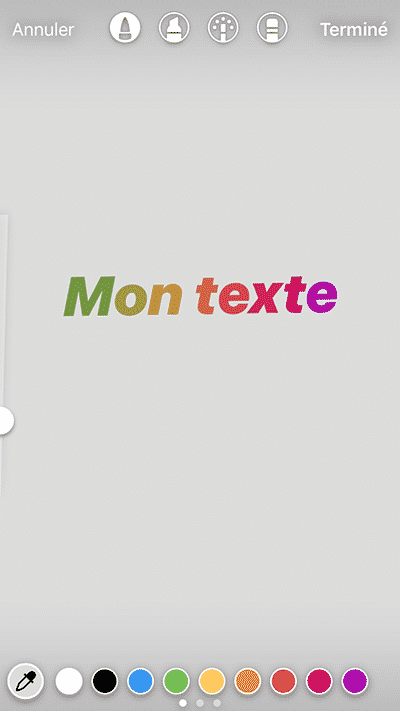 Si vous souhaitez réellement sortir du lot dans la production de vos stories, vous pourriez très bien choisir de proposer un texte aux multiples couleurs, et notamment un dégradé de couleurs !