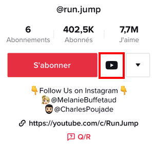 En connectant votre compte Instagram et Youtube à l’application, vous pourrez ajouter une icône située à droite du bouton « S’abonner », tel que nous pouvons le voir ci-dessous :