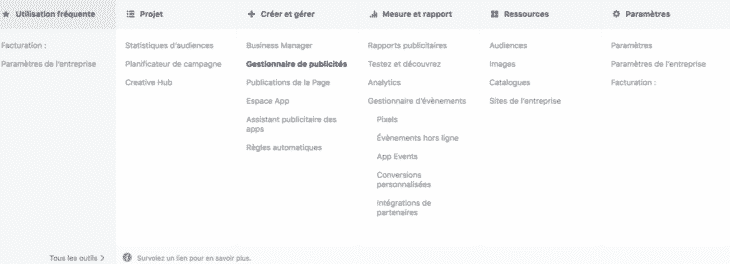 Et ce n’est pas tout : vous aurez à votre disposition de nombreux outils complémentaires dès lors que vous aurez lancé votre campagne, dans le gestionnaire de publicités :