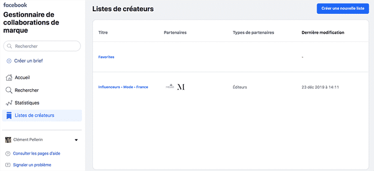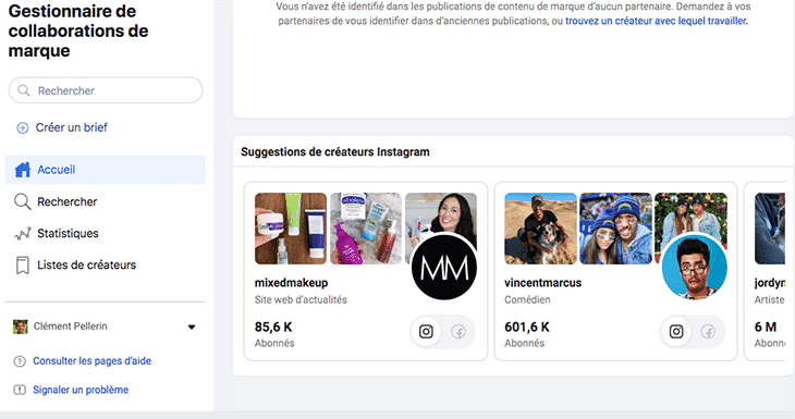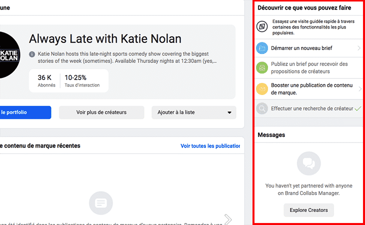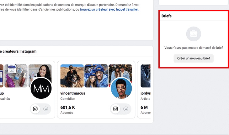 2) Les fonctionnalités du Brand Collabs Manager Facebook