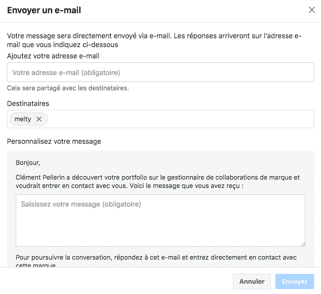 Il sera également possible de contacter le Community Manager ou influenceur administrant la page Facebook ou compte Instagram :