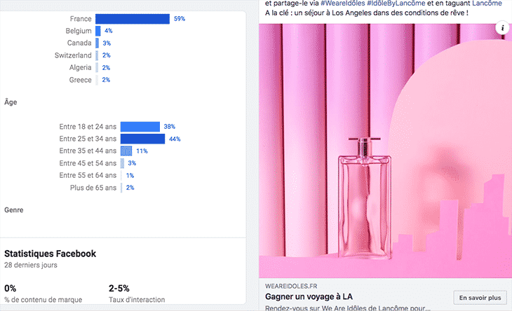 En revanche, là où cette plateforme dispose d’un véritable intérêt, c’est sur sa capacité à fournir de nombreuses données sur l’audience de chacune des pages Facebook et comptes Instagram, sans avoir à demander celles-ci à leurs propriétaires : c’est un gain de temps considérable pour identifier les bons partenaires pour votre marque, sans aucun doute.