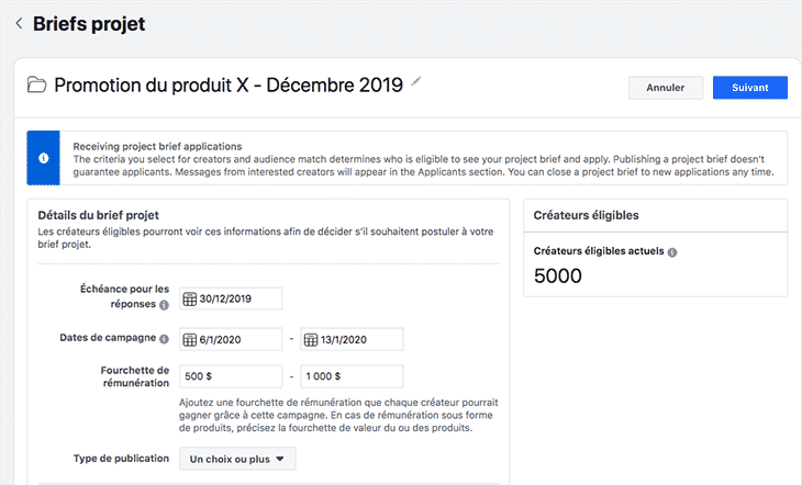Mettre en ligne un brief permet d’informer certains créateurs de votre volonté de réaliser une opération de communication d’influence.