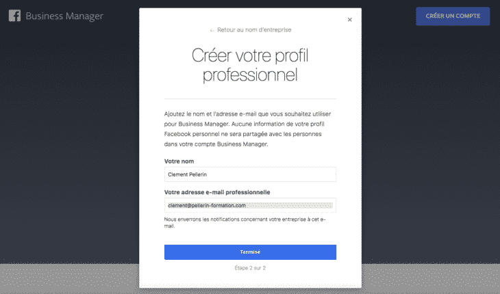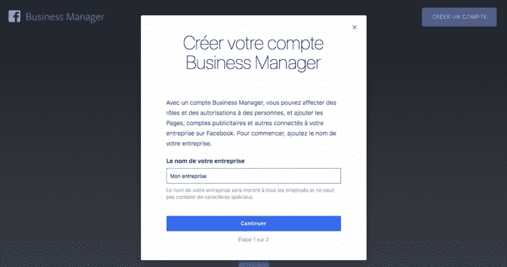 Etape 1 : créez un compte Facebook Business Manager