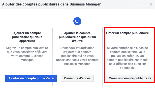 - Créer un compte publicitaire Facebook sur le Business Manager