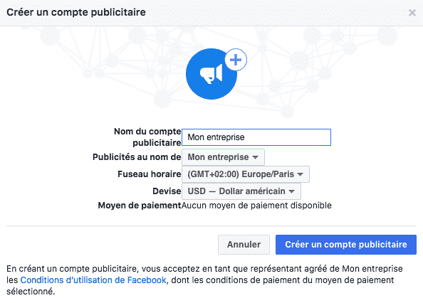 Si vous n’avez pas de compte publicitaire Facebook, voici comment en créer un :