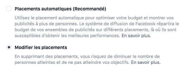 3) Sélectionner le bon placement publicitaire