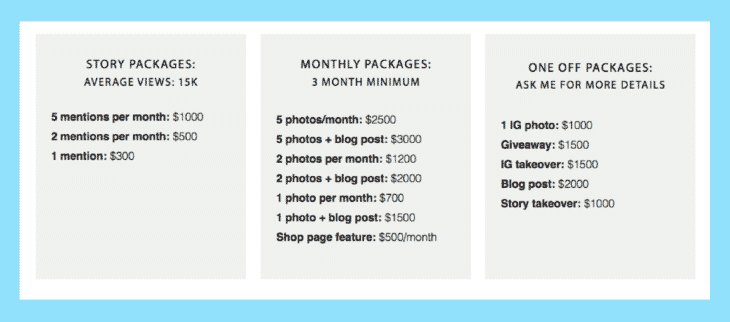 Ces chiffres sont définis par l’influenceuse et peuvent permettre d’avoir une idée sur la fourchette à allouer pour travailler avec des Instagrammers de même calibre.