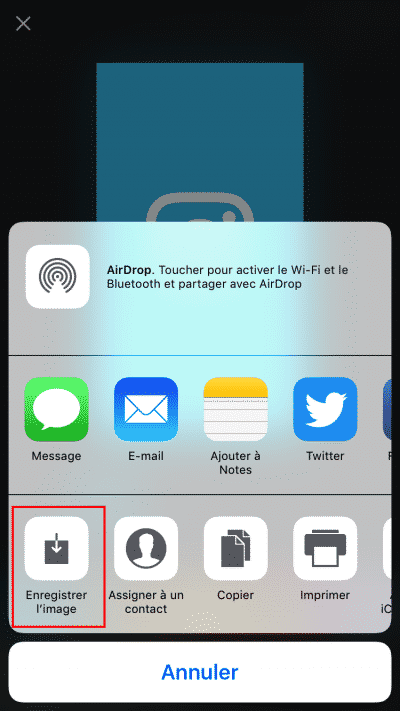 Une fois que votre visuel est prêt, vous pouvez télécharger celui-ci sur votre smartphone en cliquant sur « Share » puis « Enregistrer l’image » :