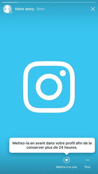 Téléchargez la photo qui vous servira de couverture dans votre Story (c’est une étape obligée) et cliquez sur « Mettre à la une » :