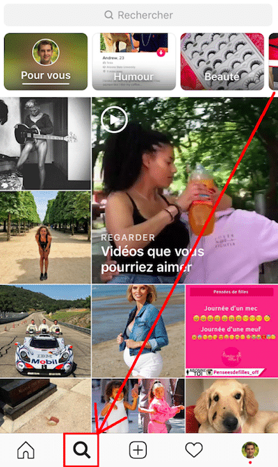 Voici comment accéder à la rubrique « Explorer » sur Instagram :
