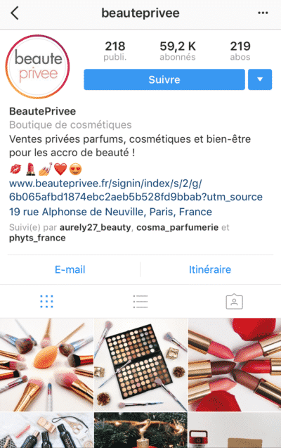 Dans leur fil d’actualités, les utilisateurs Instagram n’aiment pas trop voir de publicités. Ils préfèrent les visuels de qualité, qui montrent les produits/services sous un angle utile. Le site Beauté Privée l’a bien compris et propose à sa communauté des visuels travaillés, mis en scène et qualitatifs :