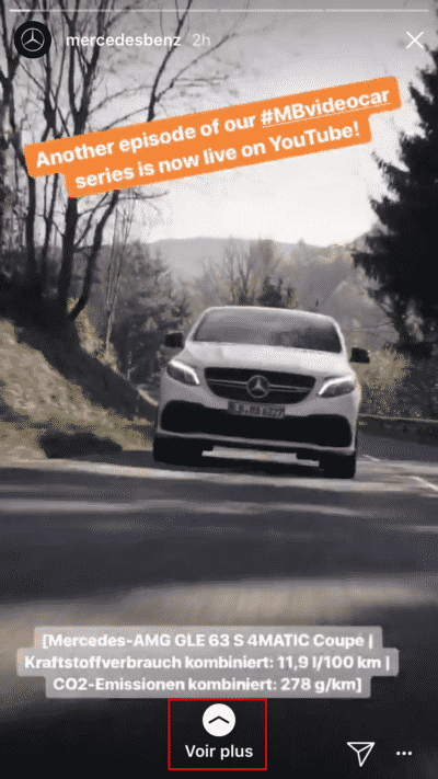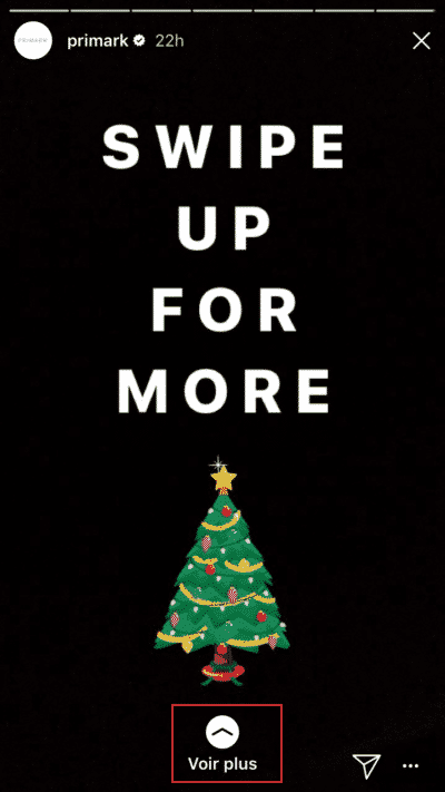 Les Stories offrent alors une opportunité supplémentaire à votre compte Instagram : attirer du trafic sur votre site internet ou vos autres réseaux sociaux. En effet, ce format vous permet d’intégrer un call-to-action « Voir Plus » qui renvoie vers le lien de votre choix (à condition d’avoir plus de 10 000 abonnés et un compte business).