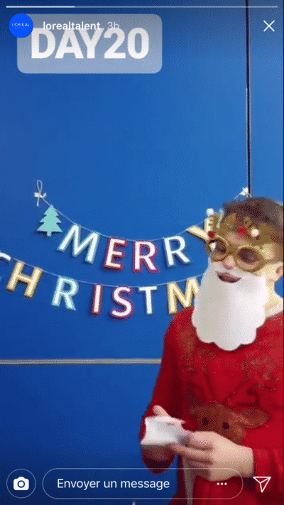 Par exemple, pour son RDV de Noël, le compte l’Oréal Talent a préféré utiliser les Stories que son fil d’actualités :