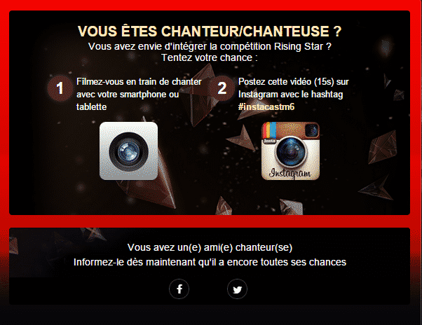 Durant les premières émissions, le casting s’est également poursuivi sur Instagram : il suffisait aux artistes de poster leur vidéo avec le hashtag #InstacastM6.
