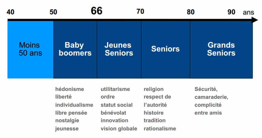 Ces différentes appellations sont dues à des différences de comportement et d’attentes en fonction des générations, comme le résume le graphique ci-dessous :