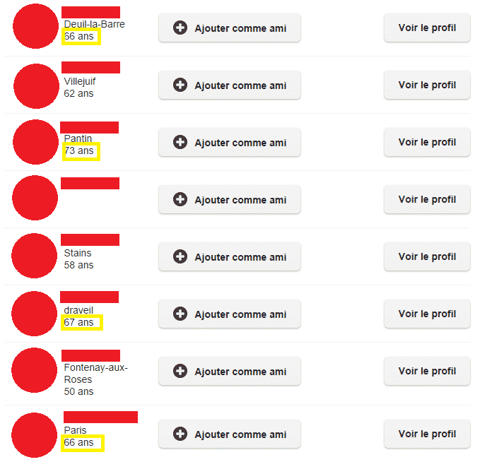 Un rapide tour sur les profils permet de constater que les plus de 65 ans sont bien représentés sur ce réseau social :