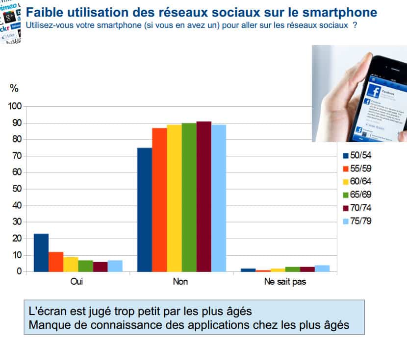 Très peu se connectent aux réseaux sociaux via un smartphone, le petit écran gênant la lecture :