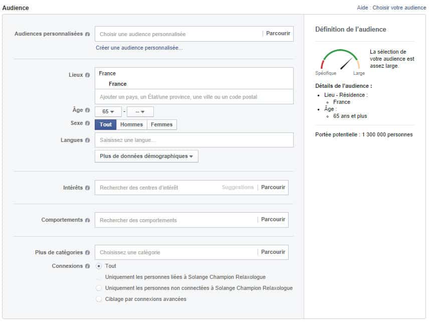 En utilisant l’outil de création de publicités, on apprend qu’ils sont environ 1,3 million d’inscrits :