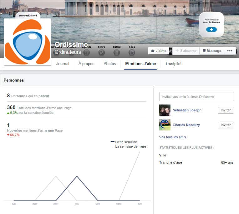 En cliquant sur “Mentions j’aime”, on apprend que la tranche d’âge la plus représentative des fans est la tranche des 54-65 ans, mais nous n’avons pas la possibilité d’en savoir plus sur la proportion des plus de 65 ans.
