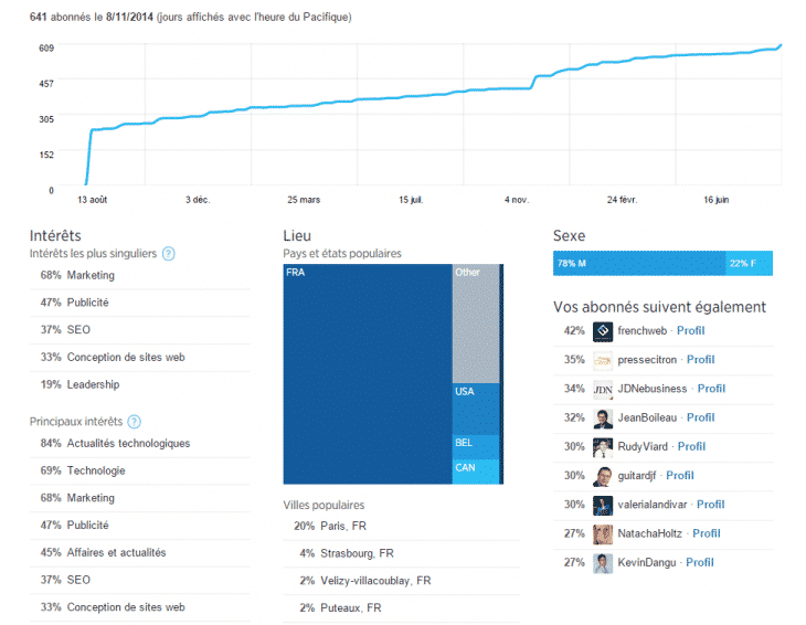 Certains réseaux sociaux vous fournissent des données sur votre audience, plus ou moins détaillées, via les statistiques.