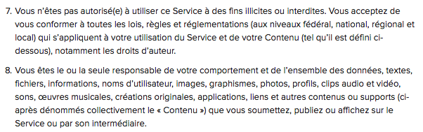 Dans ses conditions d’utilisation, Instagram mentionne le fait que vous êtes directement responsable des contenus que vous publiez sur votre compte :