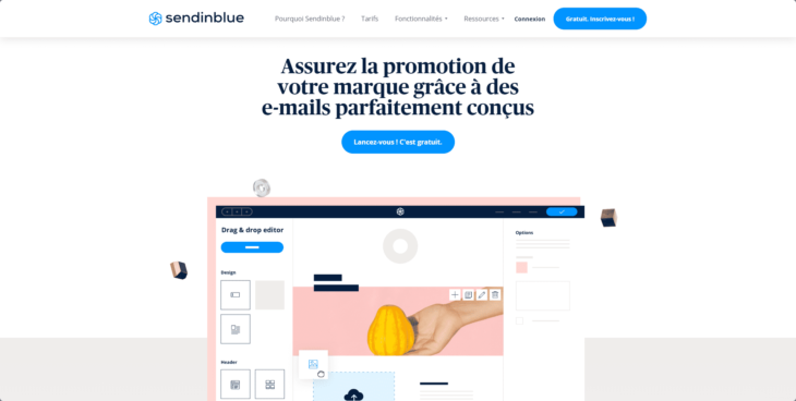 Vous disposez de nombreux modèles de newsletters, tous responsives. L’éditeur visuel proposé par SendInBlue vous permet de personnaliser votre message, d’ajouter votre charte graphique et vos call-to-action, sans avoir de connaissances en développement web.