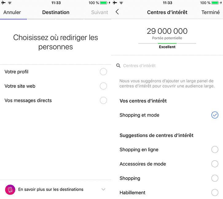 Dans le premier cas, il s’agit de la solution la plus simple pour atteindre de nouvelles personnes de manière ciblée : seules quelques étapes simples à remplir vous seront proposées pour déterminer l’objectif, la cible et le budget à allouer à la campagne. Il ne vous suffira que de quelques minutes pour mettre en ligne votre première action de sponsoring.