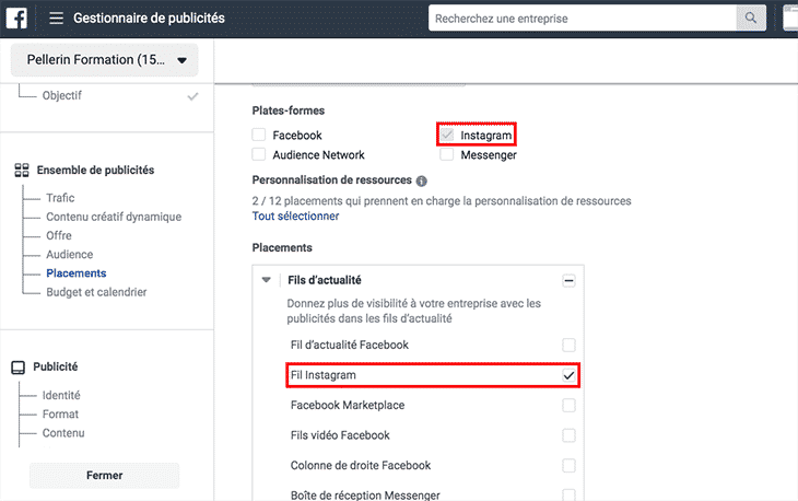 - depuis le Business Manager Facebook