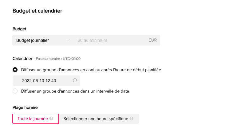 Définir le budget, calendrier et enchère pour votre publicité TikTok