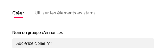 Il vous sera ensuite demandé de renseigner le nom du groupe d’annonces, bien souvent correspondant au nom de votre audience cible.