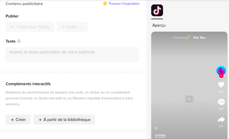 De la même manière qu’il est possible de mettre en place des campagnes publicitaires Facebook & Instagram, TikTok propose un module permettant de sponsoriser du contenu auprès d’audiences spécifiques à partir de quelques dizaines d’euros par jour.