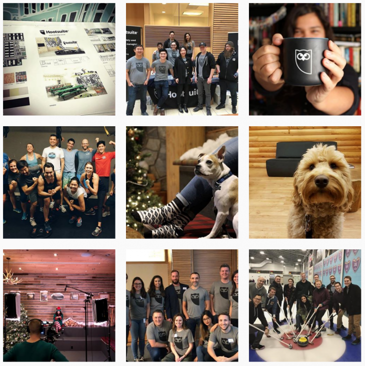 Dans ce cas, il est plutôt question de proposer toujours la même valeur utile à l’internaute. Cette uniformisation peut correspondre parfaitement à un usage business d’Instagram, et c’est par exemple ce que propose la société Hootsuite qui cherche à partager les coulisses de son entreprise, comme nous le voyons ci-dessous :