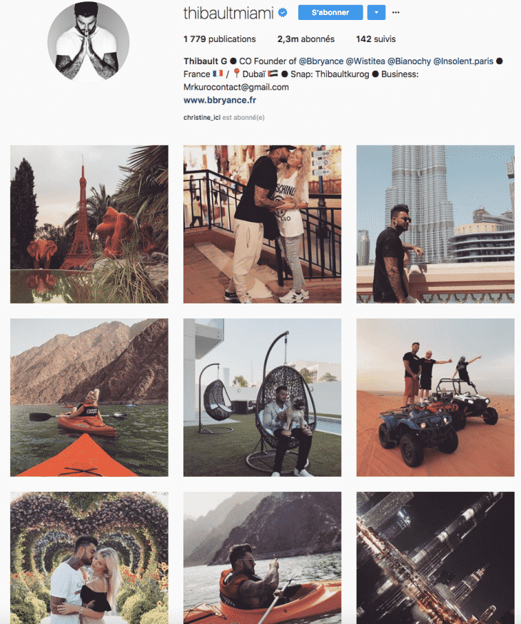 Dans ce troisième et dernier cas, l’uniformisation porte plus sur les émotions dégagées et le mode de vie que la personne ou marque souhaite partager auprès de ses abonnés. Dans le premier exemple ci-dessous, la star de télé-réalité publie régulièrement des photos dans des lieux paradisiaques ayant pour finalité de communiquer sur une forme de réussite personnelle et d’une vie épanouie.