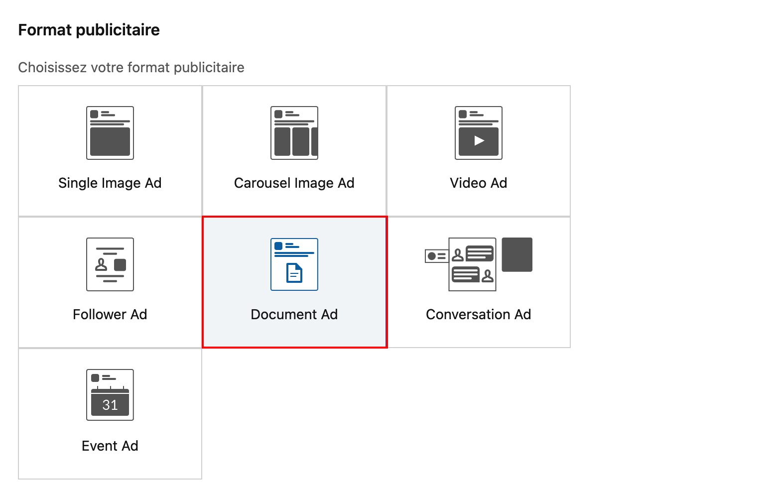 Cela signifie que vous pouvez exécuter des annonces de documents sur LinkedIn uniquement.